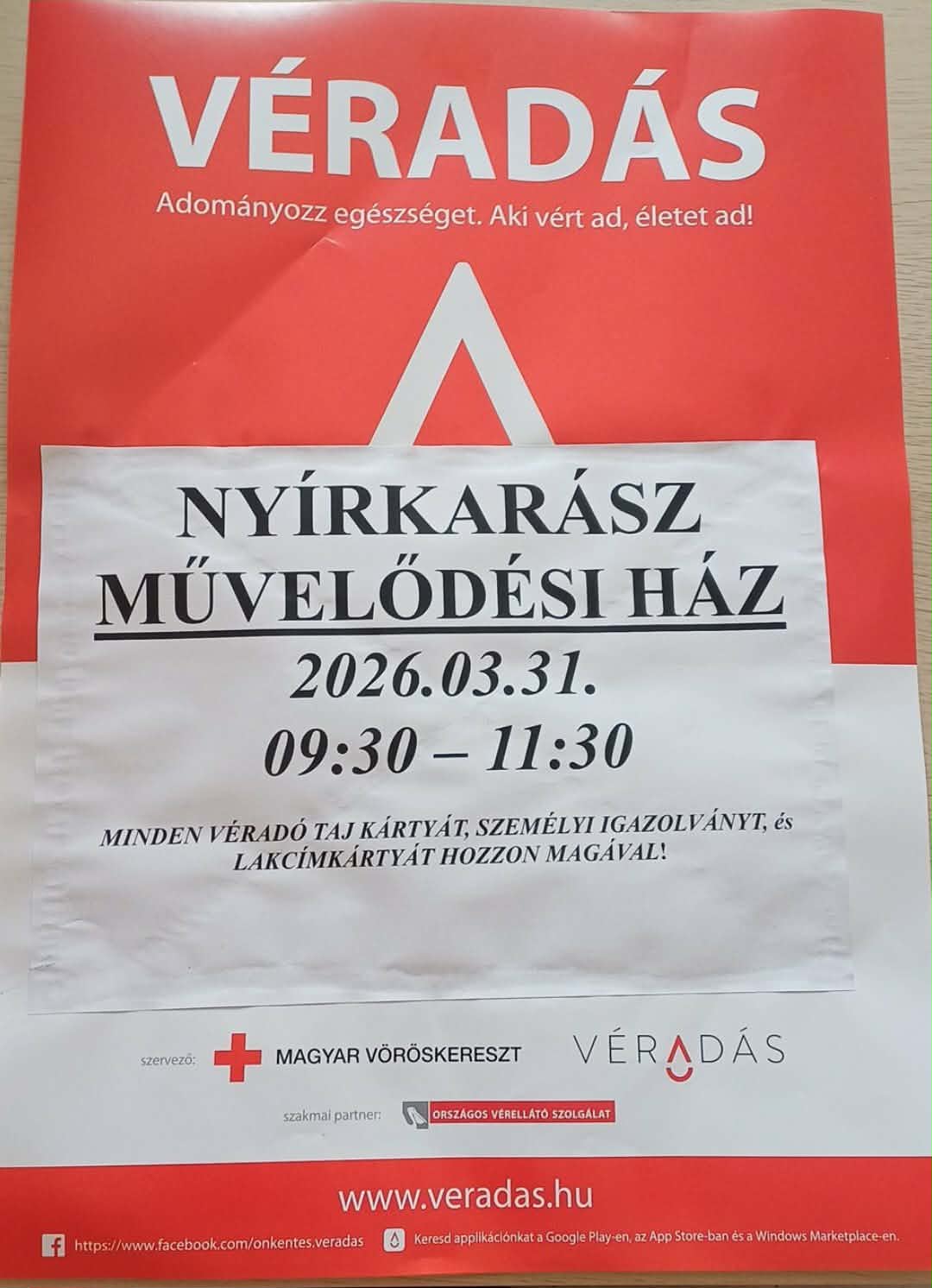 2026.03.31.-én Véradás Nyírkarászban!