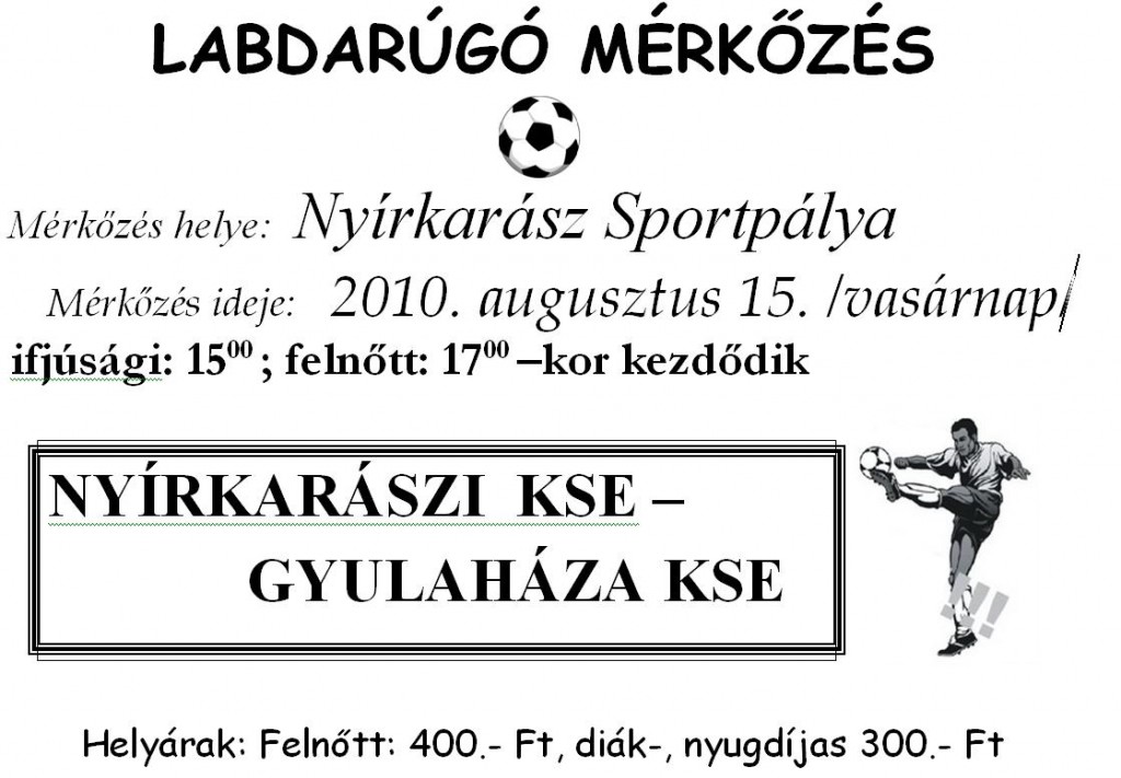 Ismét rúgják a bőrt focistáink, ugyanis a 2010/2011-es bajnokság első meccsén Gyulaházával csapnak össze fiaink vasárnap délután 17.00 órakor.