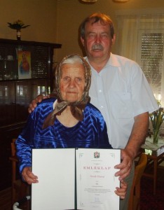 A nagy családi ünneplést Húsvét napján tartották, melyen az összes rokon és barát részt vett egytől-egyig és gratuláltak Veronka néninek. Községünk polgármestere május 9-én 15.00 órakor lepte meg az ünnepeltet. A jókívánságok mellett átadásra került az Orbán Viktor Miniszterelnök által aláírt Emléklap és egy gyönyörű virágcsokor is.